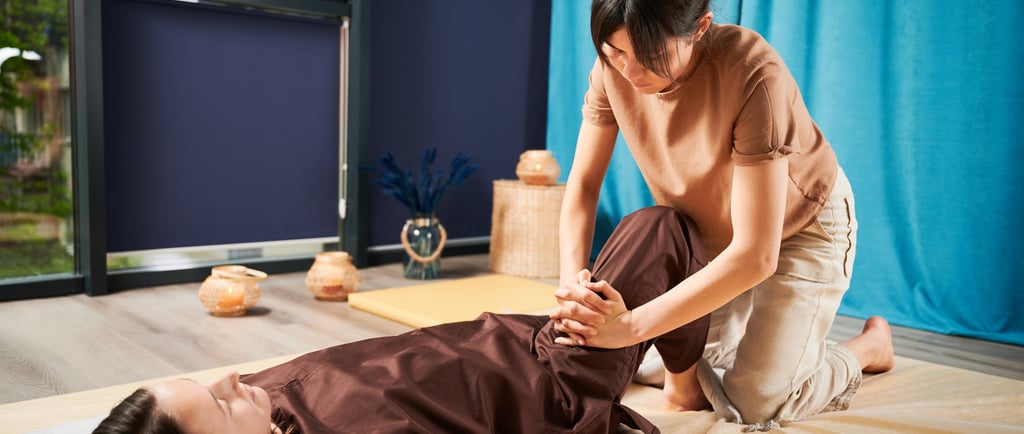 During your first Thai massage session, the therapist will guide your body through gentle stretches and apply rhythmic pressure. The massage is done without oil, usually over comfortable clothing, and focuses on relaxing muscles while improving movement.